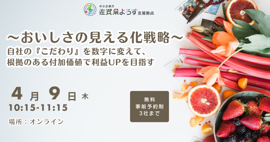 《オンライン》~おいしさの見える化戦略~自社の『こだわり』を数字に変えて、根拠のある付加価値で利益UPを目指す