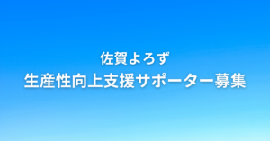 公益財団法人佐賀県産業振興機構(以下「財団」という。)では、中小企業・小規模事業者ワンストップ総合支援事業(よろず支援拠点生産性向上支援センター事業)における「生産性向上支援サポーター」(以下「支援サポーター」という。)を、次のとおり募集します。
