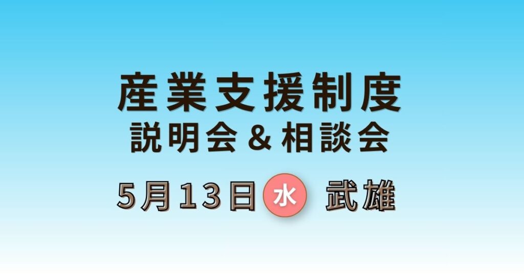 武雄地区「産業支援制度」説明会&相談会 のご案内!