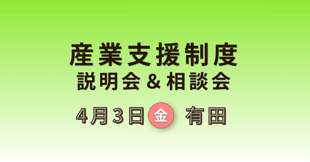 有田地区「産業支援制度」説明会&相談会 のご案内!