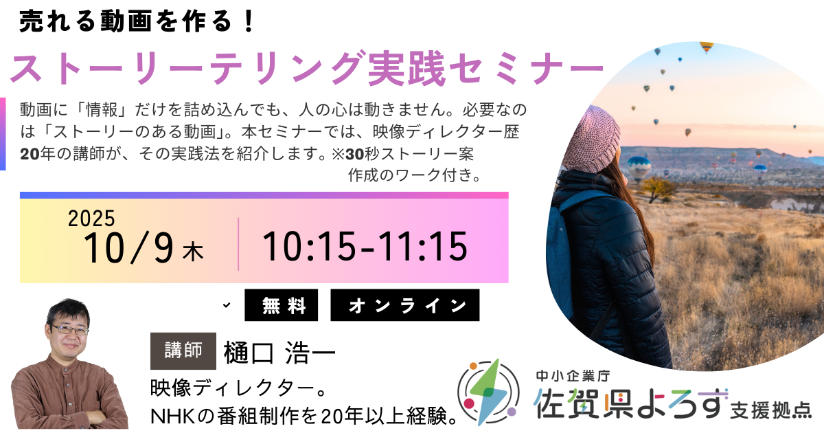 このセミナーでは、映像ディレクター歴20年&小説執筆の経験から「あなたのストーリー」作りのポイントをお伝えします。