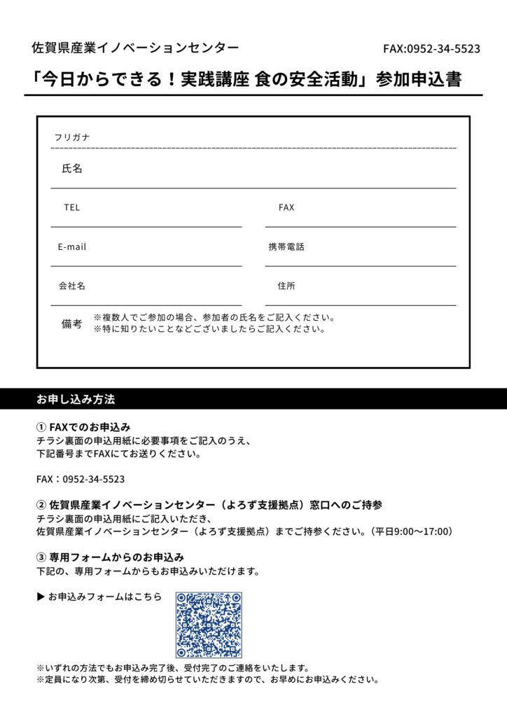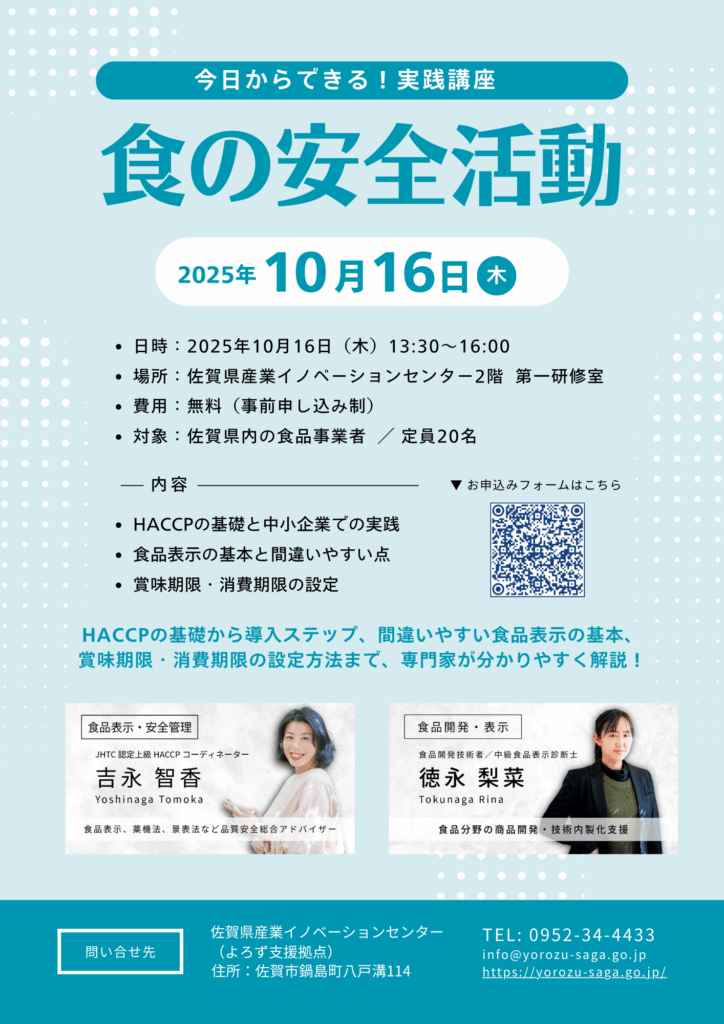 - 対象:佐賀県内の食品事業者 / 定員20名