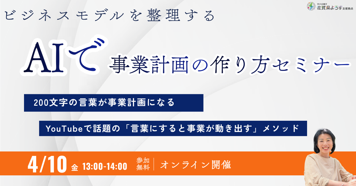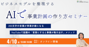 このセミナーでは、AIを活用してビジネスモデルを整理し、事業計画書を作る方法を実践形式で分かりやすく紹介します。