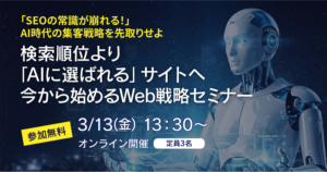 これまでのSEO対策との違いや、これからのAI時代に備えて今やるべきことを、実例を交えて学べる内容です。