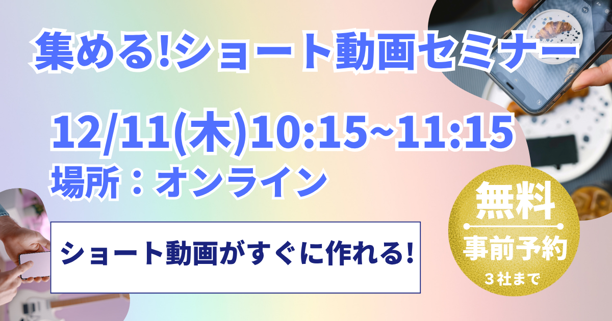 本セミナーでは、この“集める動画”に特化し、SNS時代に欠かせないショート動画の構成・設計のコツを紹介。