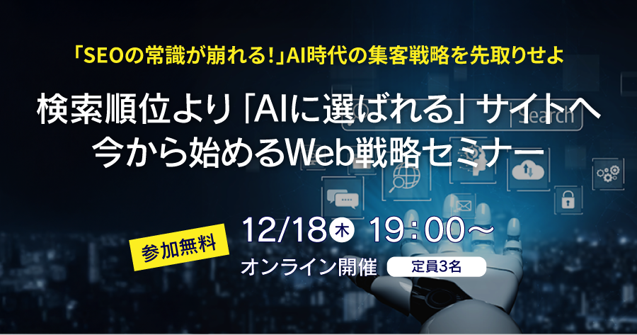 《オンライン》検索上位より「AIに選ばれる」サイトへ:今から始めるWeb戦略セミナー