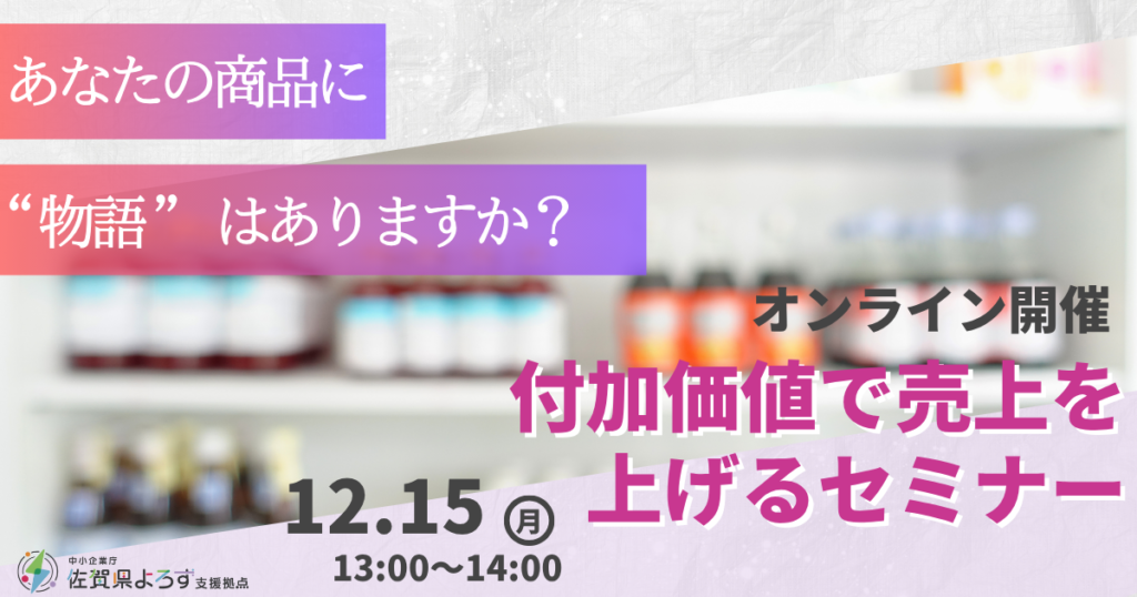 《オンライン》あなたの商品に“物語”はありますか?~付加価値で売上を上げるセミナー~