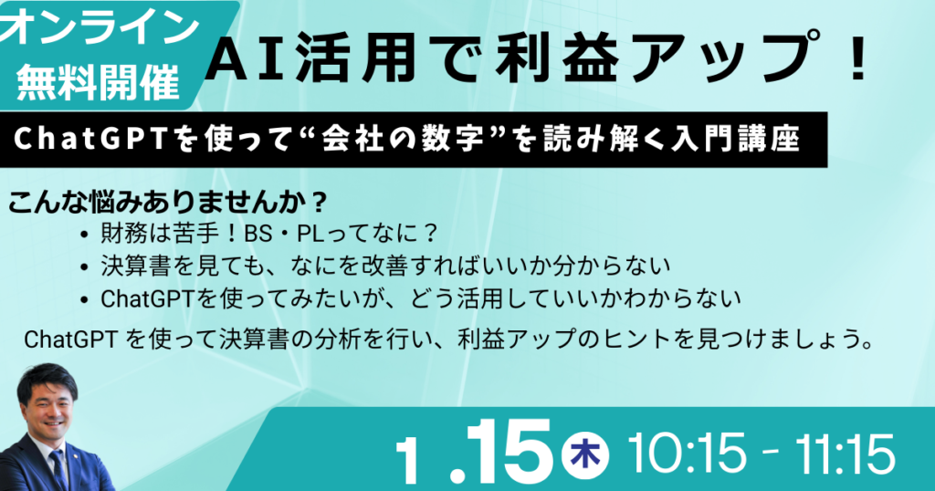 《オンライン》AI活用で利益アップ!〜ChatGPTを使って“会社の数字”を読み解く入門講座〜