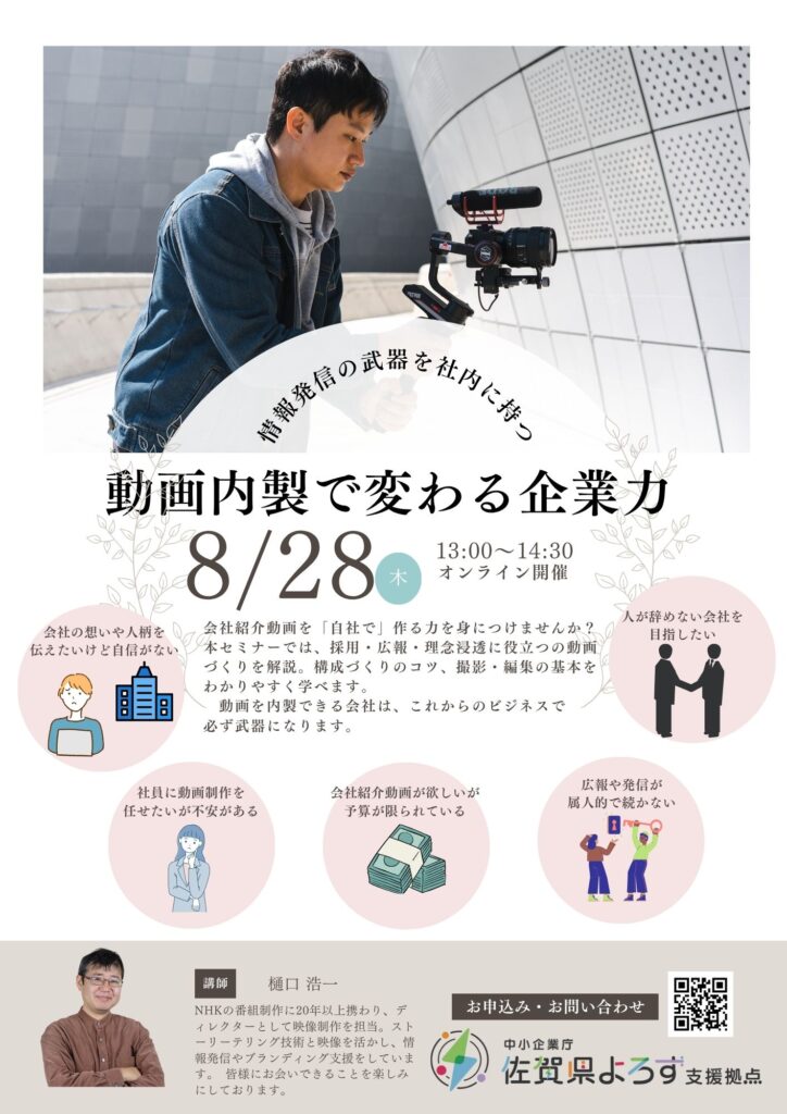 ~映像制作20年のプロが伝え方を直接サポートします~ セミナー内容 会社紹介動画を「自社で」つくる力を身につけませんか?本セミナーでは、採用・広報・理念浸透に役立つの動画づくりを解説。構成づくりのコツ、撮影・編集の基本をわかりやすく学べます... -