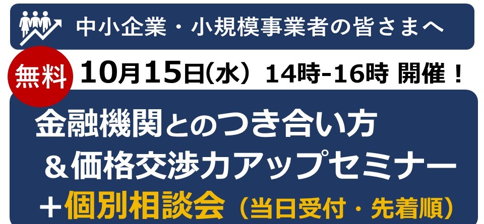 【無料セミナー&個別相談会】金融機関とのつきあい方 & 価格交渉力アップ講座(佐賀県・10月15日開催)