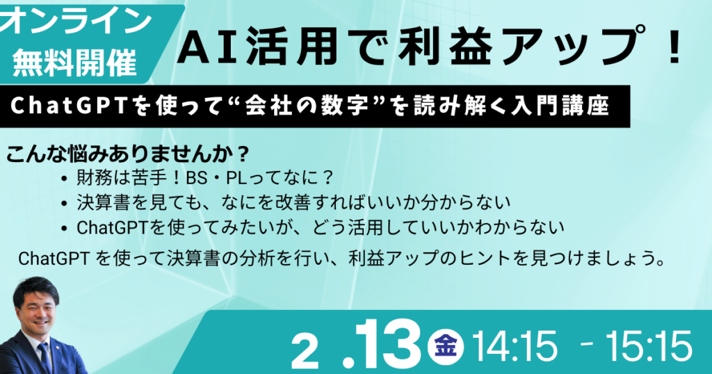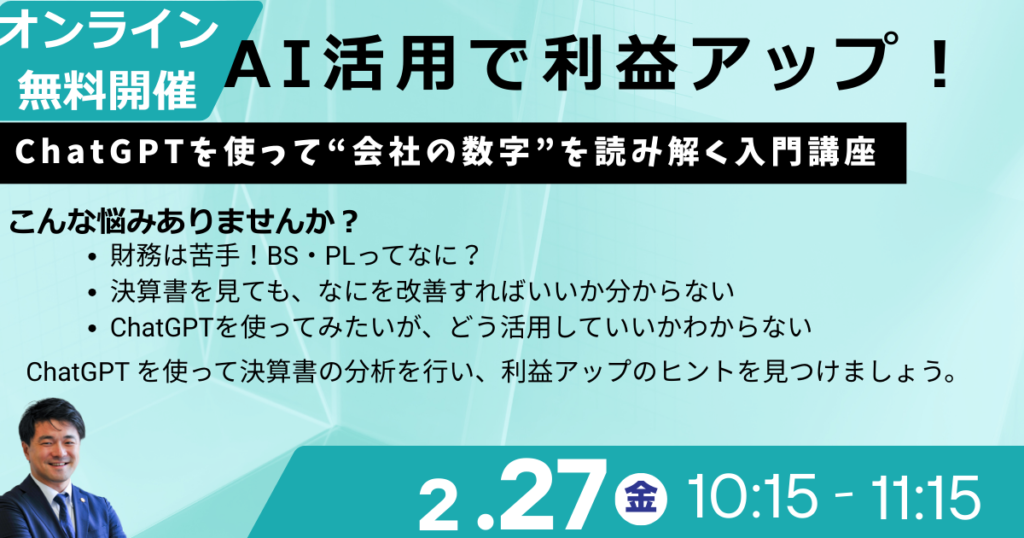 《オンライン》AI活用で利益アップ!〜ChatGPTを使って“会社の数字”を読み解く入門講座〜