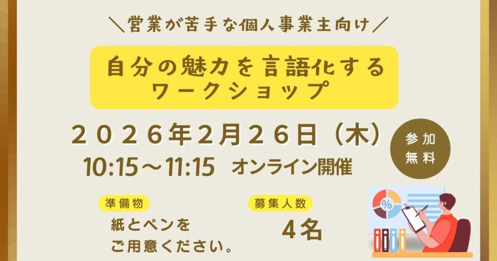 《オンライン》【営業が苦手な個人事業主向け】自分の魅力を言語化するワークショップ