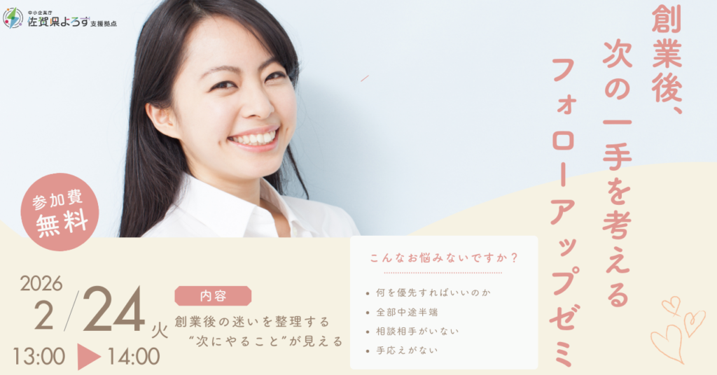 セミナー内容 佐賀県で独立・開業をお考えの皆様へ中小企業診断士による個別相談会を開催いたします。「何から始めればいいかわからない」「資金調達が不安」「事業計画… -